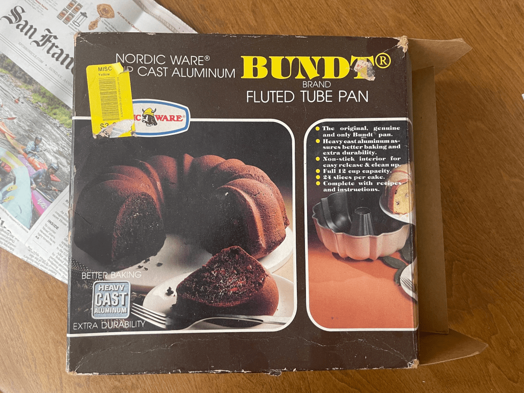 Considering all the madness in the world, the logical place to start here is with Bundt cakes. I was cleaning out our garage this past month and I happened across a classic specimen of a Bundt cake pan that looked like it was straight from the 1970s or 1980s (see photo above). Check out that brown tone on the box! That’s some exquisite old school brown right there. Amazing. I feel like this is something that one of William Rathje’s classes must have found in their excavations (along with all the paper and spoiled meat). I have no idea where this bundt cake pan came from or how it ended up in our garage. I think it may have been picked up in a yard sale or thrift store by a family member and then passed along to us. It’s so interesting how these pieces of material cultural end up getting passed around, stored, and (sometimes) rediscovered. Things just move around and they leave a trace of our lives, connections, and serendipitous decisions. This reminds me of James Deetz’s argument about all those ‘small things forgotten.’ These things outline our lives, and sometimes they show up at just the right time. I immediately notified Martin Pfieffer about this find since he’s the resident anthropologist/bundt cake expert. His response: “IT IS A SIGN! IT IS A GIFT!” What sign, you ask? When things go sideways (and this is happening a lot these days), take some time off and make some cake. Especially if it’s round.